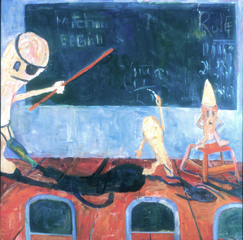 It seems to me that in American culture boys often consume alcohol to become more like men and men consume to become more like boys. My work springs from the investigation of how boys and men interact with each other, often with alcohol as a mediator. However, my work is not entirely image driven; the content is revealed through a worked painted surface.