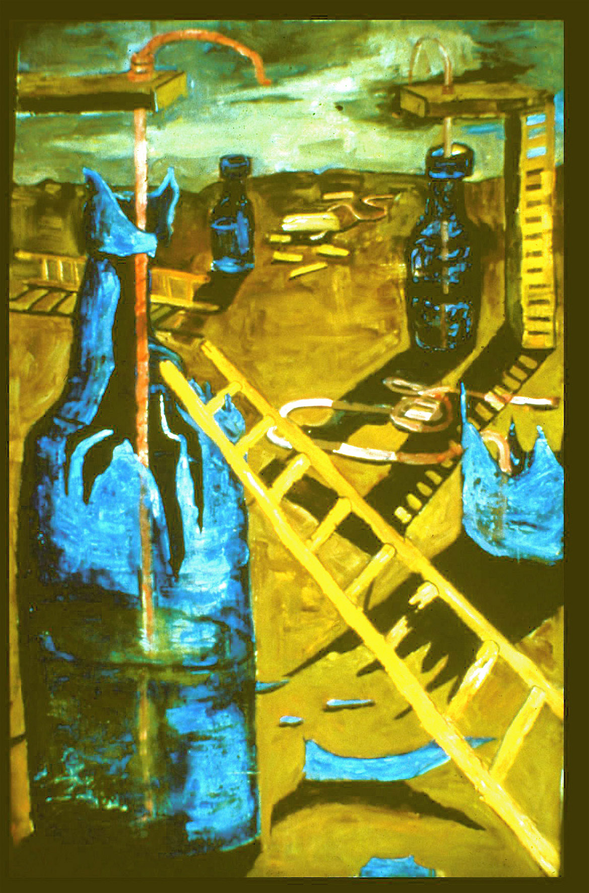 My interests have been the same for many years: painting, communication, story telling, masculinity, alcohol culture, tragedy, comedy, fragility mending, loss and transformation. I want to make paintings that equally show my love of Philip Guston, Spalding Gray, and Calvin and Hobbes. The work simultaneously references the Dutch still life paintings I studied as an undergraduate and my vibrant memories of the enormous piles of empty, and often broken, bottles in my dorm room.